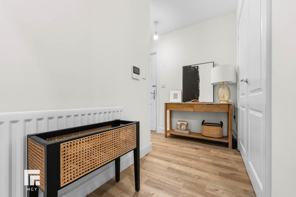 ENTRANCEHALLWAY Approached via a wood panelled entrance door leading to the spacious entrance hallway. Large double built in storage cupboard. LVT flooring. Radiator.
