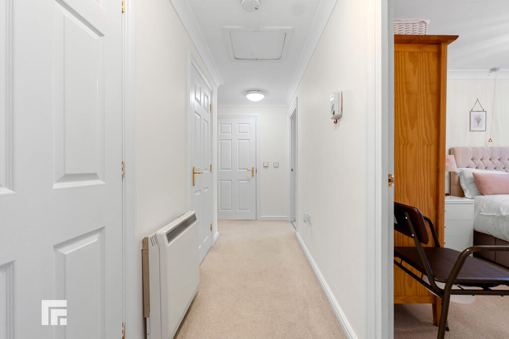 HALLWAY Larger than average entrance hallway. uPVC double glazed window to side. Double cupboard with shelving, coat hanging space and light. Additional two separate cupboards housing tank and additional storage. Warden assist cord. Electric heater.