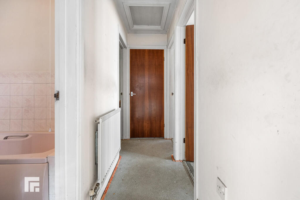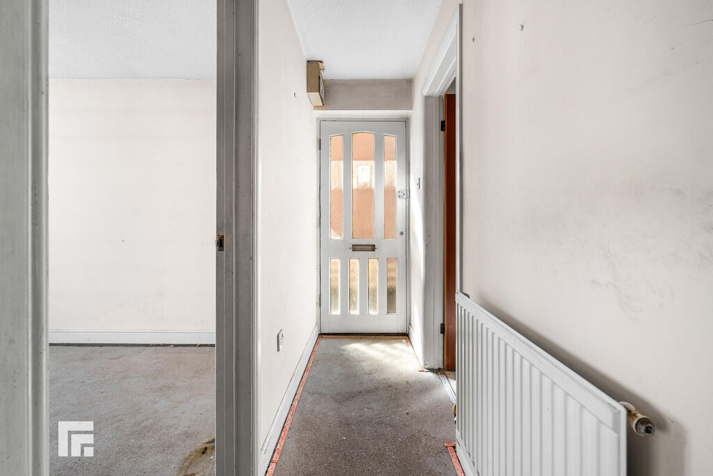 ENTRANCEHALLWAY Approached via a wooden entrance door with inset obscured glass windows. Storage cupboard. Radiator.