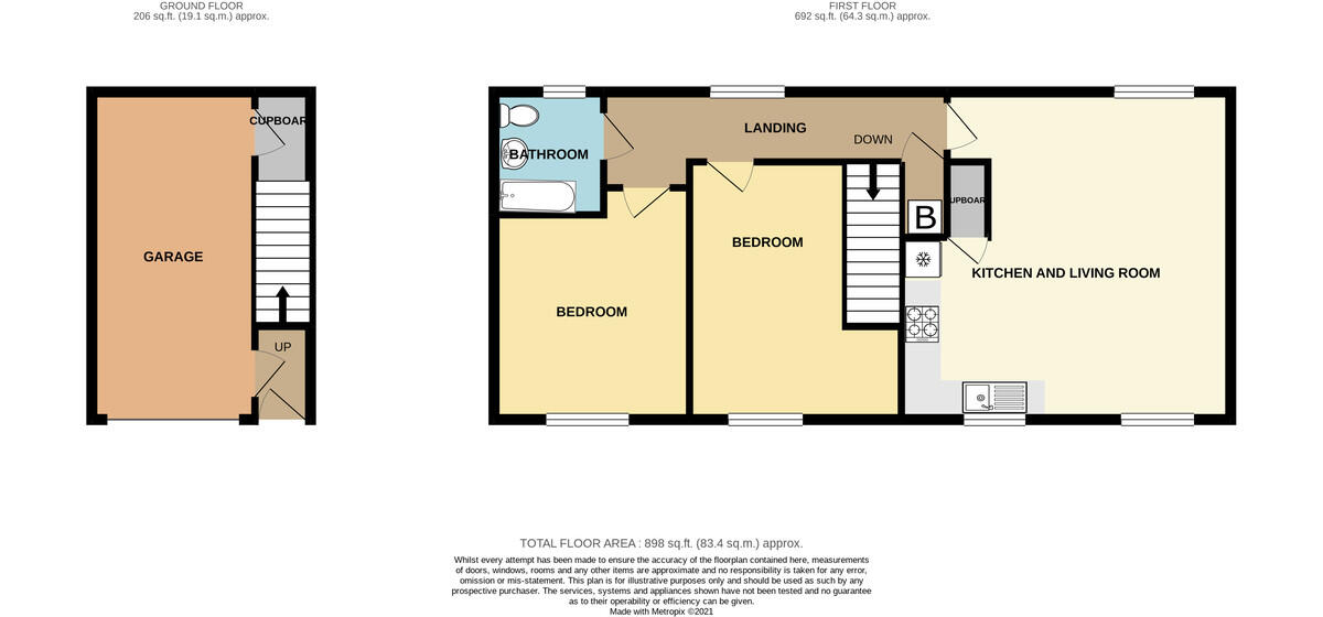KITCHEN/LOUNGE/DINER19' 2" x 17' 8" (5.85m x 5.39m) A spacious open plan room including lounge/kitchen/diner. uPVC double glazed window to front, plus two uPVC double glazed windows to rear. A fitted kitchen with a range of base and eye level units incorporating one and a half stainless steel sink unit with drainer and mixer tap and complementary work surfaces. Built in electric oven, gas hob and extractor hood over. Space for fridge/freezer and washing machine. Storage cupboard. Two radiators.