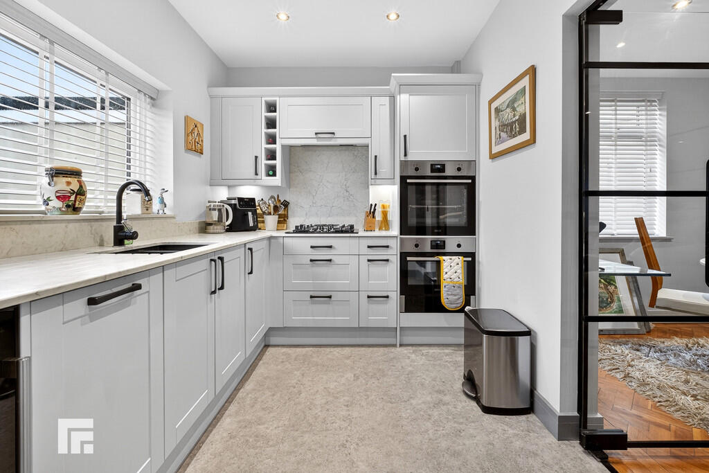 KITCHEN10' 11" x 7' 4" (3.33m x 2.24m) Upvc double glazed window to side. Spotlights to ceiling. Fitted Wren base and wall units with marble worksurface incorporating one and a half ceramic sink unit with mixer tap. Built in double oven/microwave, Inset gas hob with extractor fan over. Integrated fridge, dishwasher and wine cooler. Vertical wall mounted radiator. Crittal door to :-