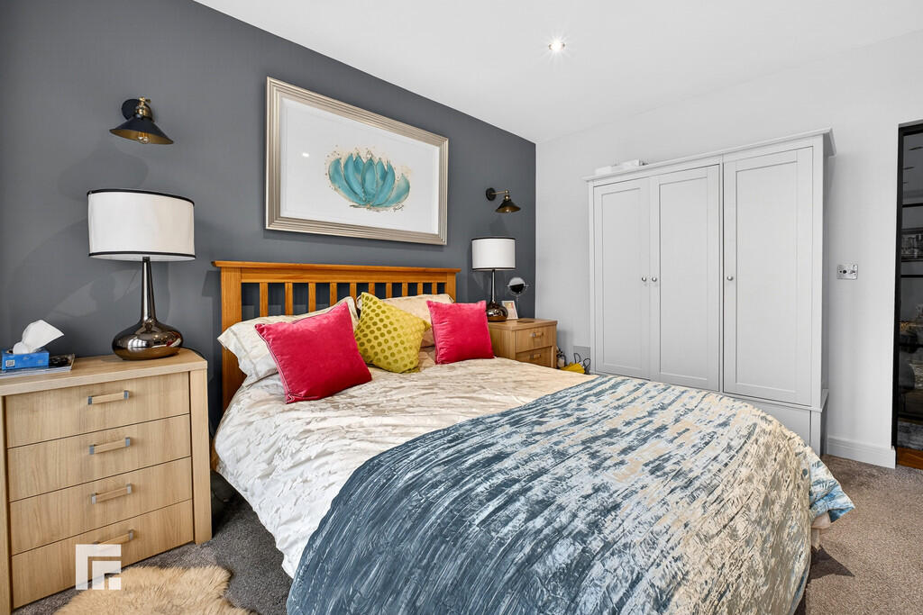 BEDROOMONE13' 6" into bay x 11' 7" (4.12m x 3.55m) Upvc double glazed bay window to front. Spotlights to ceiling with dimmer switch. Wood block flooring. Wall lights. Radiator.