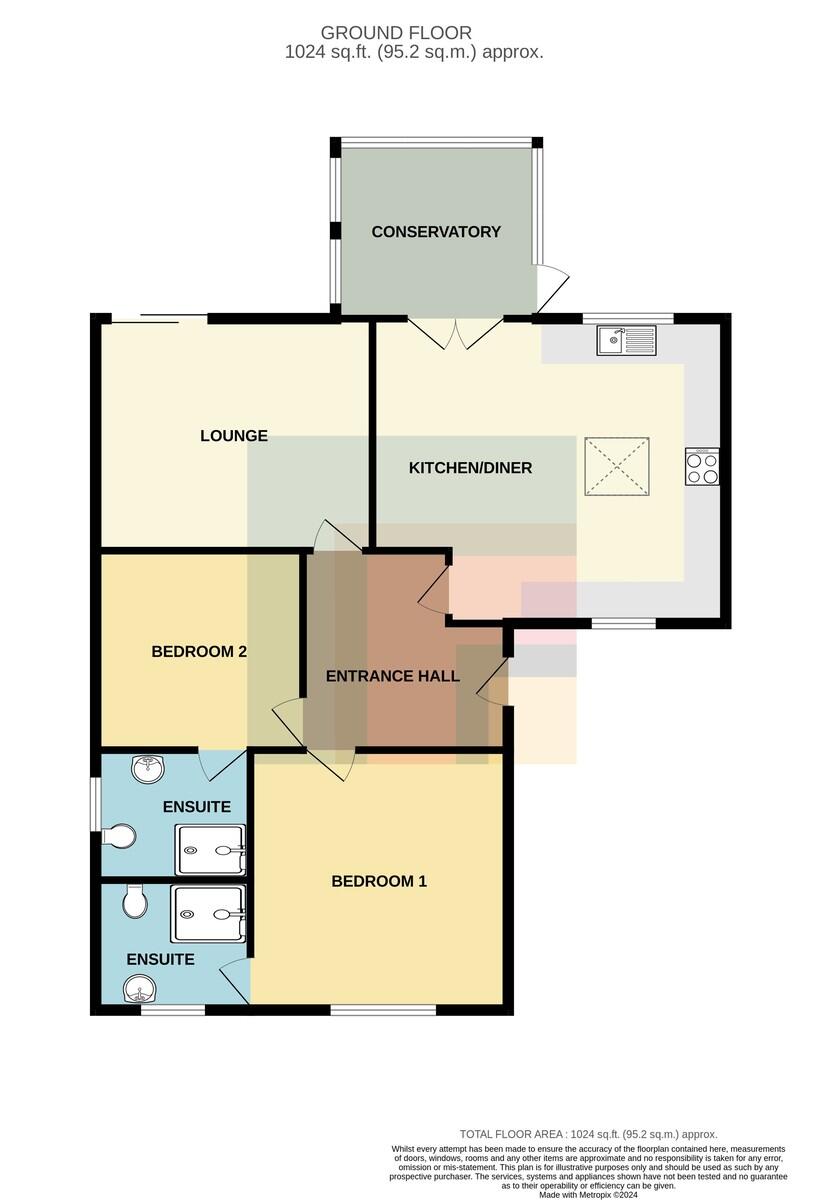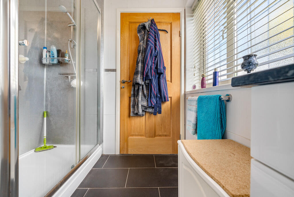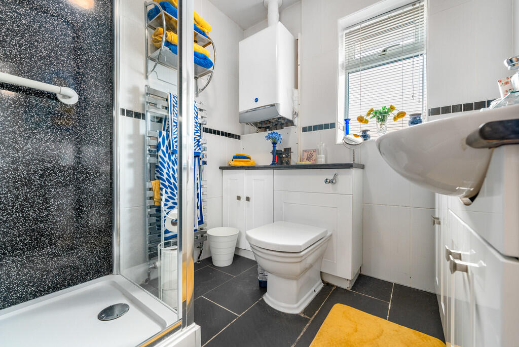 ENSUITETWO7' 11" x 6' 4" (2.43m x 1.95m) A modern suite to include low level WC, vanity enclosed wash hand basin and fitted shower cubicle. Tiled flooring and partly tiled walls. Wall mounted gas central heating boiler. uPVC double glazed obscure window to side. Ladder radiator.