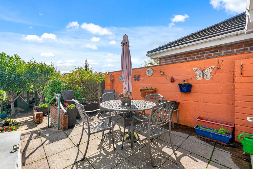 GARDEN A beautifully presented, South facing rear garden with a variety of raised flower beds and shrub borders. Three paved seating areas with pathway to garden shed, greenhouse and summerhouse (with power). Boundary fence with gated side entrance. Outside tap. External power points.