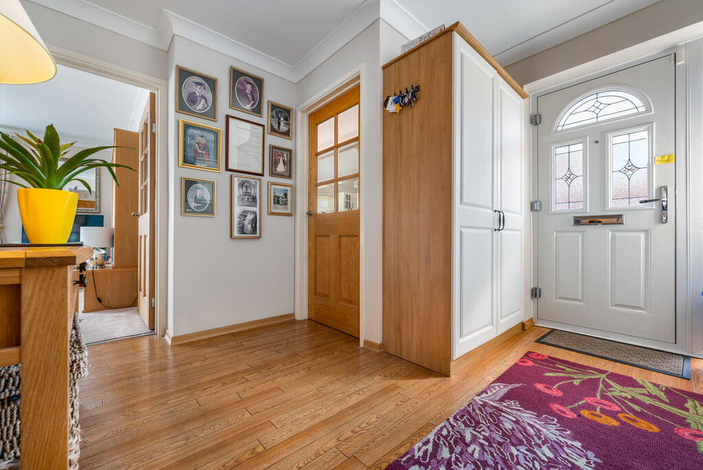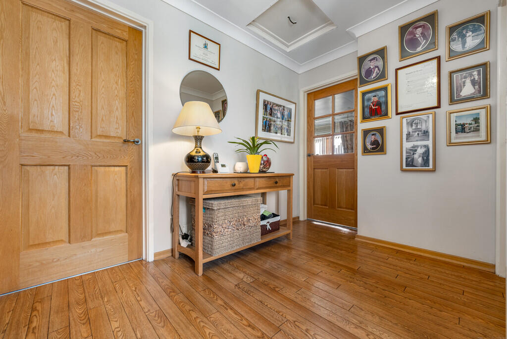 ENTRANCE Entered via spacious resin driveway with parking for three vehicles. Immaculately presented front garden with colourful shrubs, trees and hedges. Outside tap. External power points.