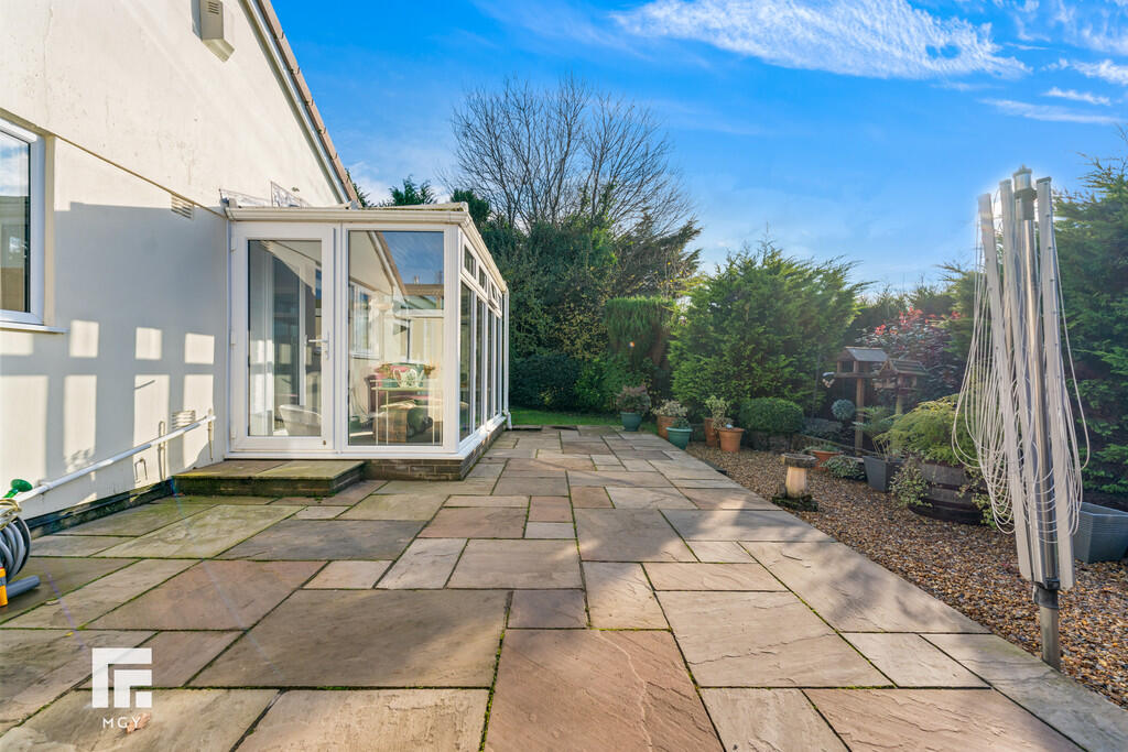 DESCRIPTION **DETACHED BUNGALOW**EXTENDED**BEAUTIFULLY MAINTAINED GARDENS**GARAGE AND DRIVEWAY**GARDEN ROOM** A well presented two double bedroom detached bungalow in the sought after area of Creigiau. Entrance hallway, lounge, second reception room, conservatory, kitchen with breakfast bar, cloakroom, shower room, principal bedroom and second double bedroom. A beautifully maintained rear garden with timber shed and garden room. An enclosed courtyard to front with timber shed. Driveway with parking for up to five vehicles. Garage with electric door. Front garden. EPC Rating: TBC