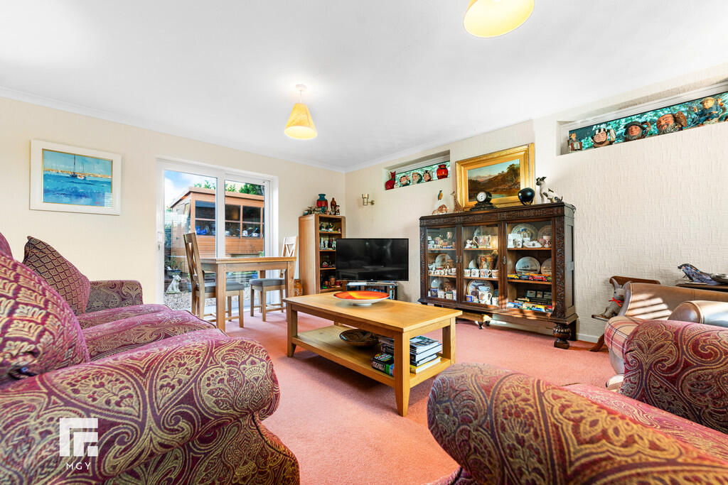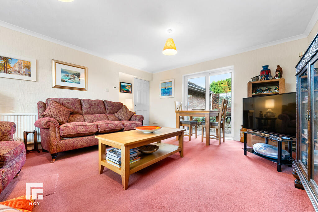LOUNGE17' 4" x 13' 9" (5.30m x 4.20m) A spacious family lounge. Large uPVC window overlooking the well maintained rear garden. Radiator. Sliding doors opening into enclosed front garden. Two additional windows to side.