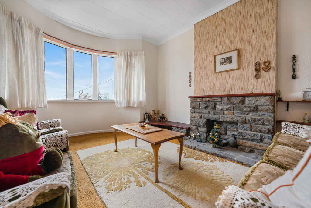 LOUNGE14' 1" x 11' 8" (into bay)(4.30m x 3.57m) With bay fronted window enjoying open views, feature stone fireplace and radiator.
