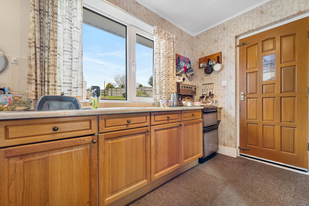 KITCHEN11' 6" x 7' 11" (3.53m x 2.42m) With units and worktops to two sides, inset stainless steel sink with side drainer, window to rear, space for slot in cooker, wall tiling to splash back areas, airing cupboard housing hot water cylinder, radiator and door to rear porch.
