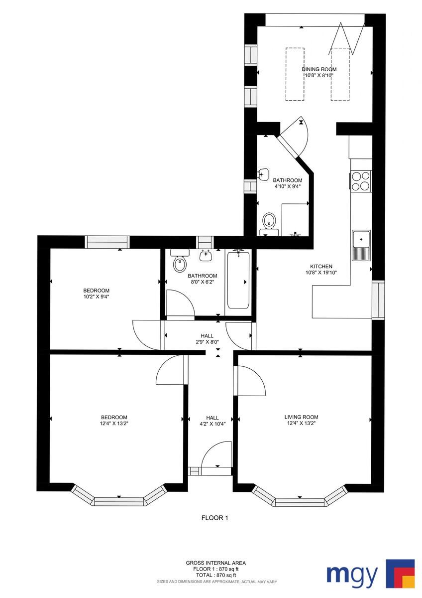 BEDROOMONE13' 2" x 12' 4" (4.01m x 3.76m) Double glazed uPVC bay window to front. Radiator. Coved ceiling. Fitted wardrobes.