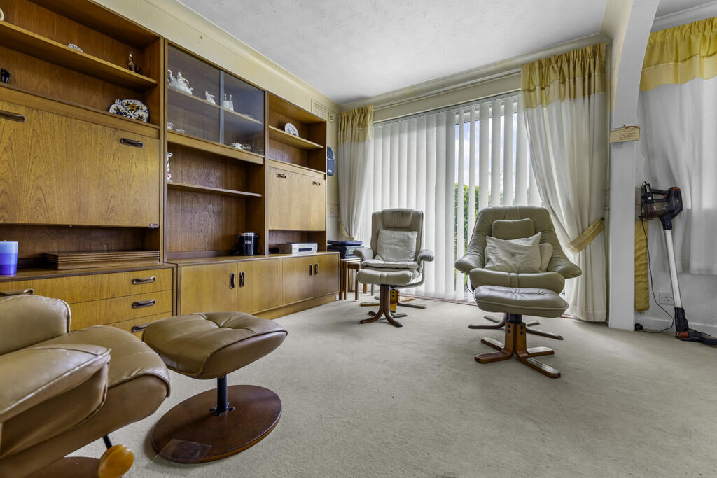 SITTINGROOM12' 2" x 9' 2" (3.71m x 2.80m) Double glazed sliding doors to rear garden. Textured and coved ceiling. Door to cloak cupboard / storage cupboard. Archway to :-