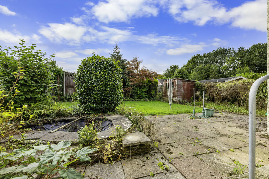 OUTSIDE A substantial corner plot, gated access either side. The rear is paved and lawned with a pond (currently drained). To the front there are extensive lawned areas to side and front, block paved driveway and garage accessed via up and over door.