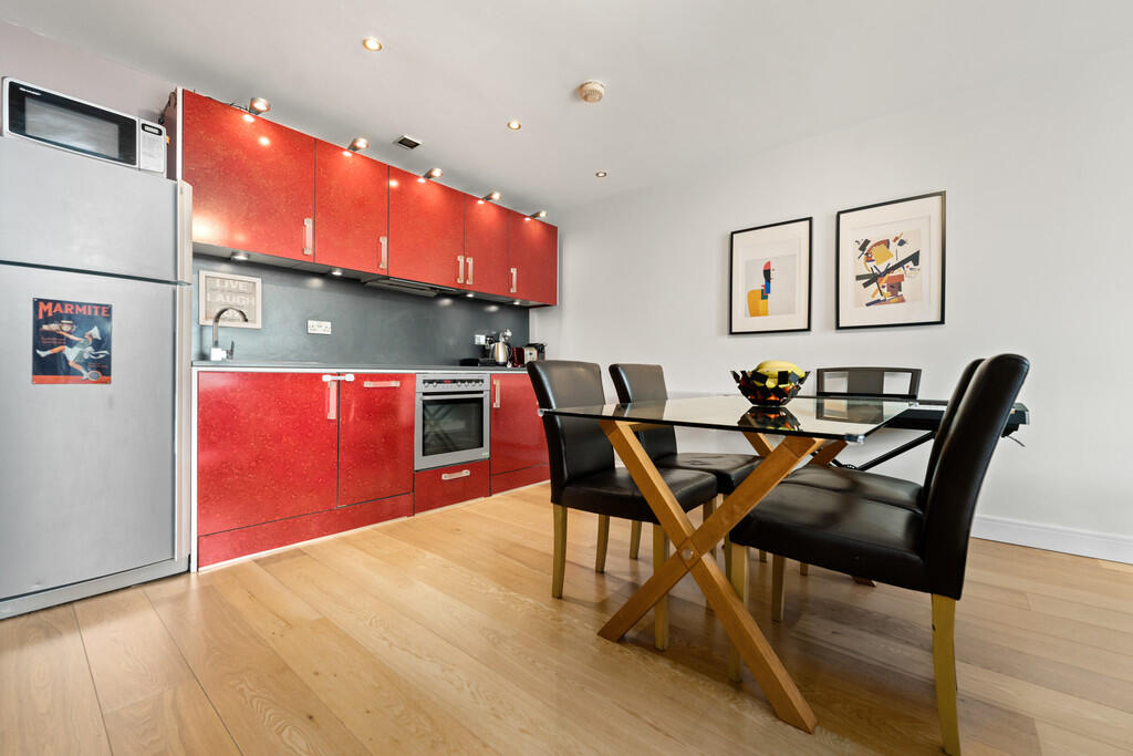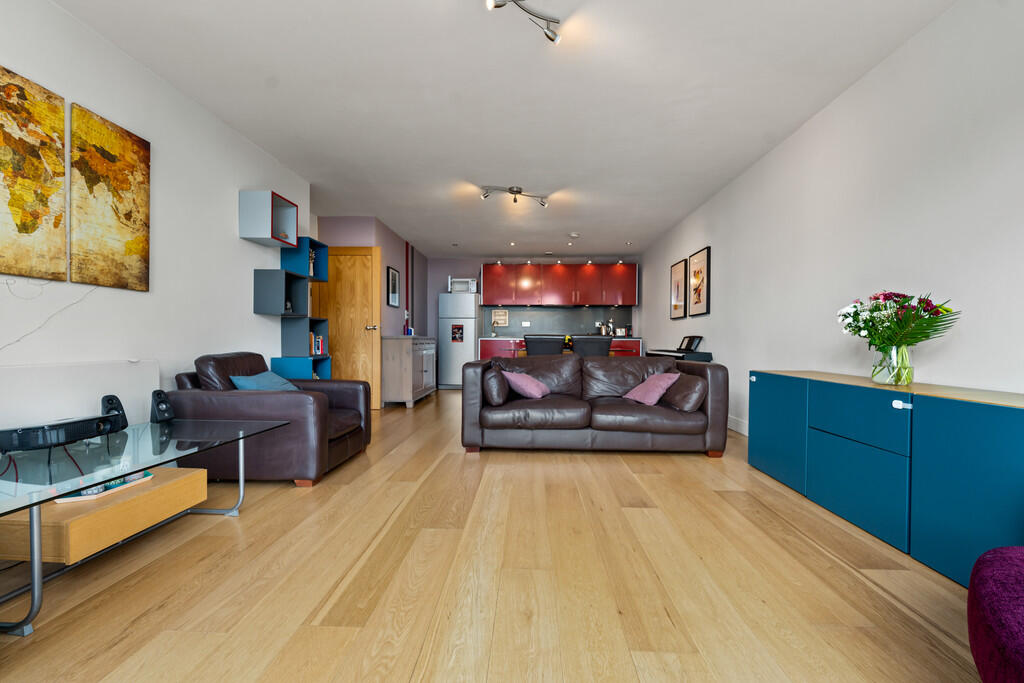 LOUNGE/KITCHEN/DINER Double glazed floor to ceiling windows to front. Ample natural daylight. New engineered wood flooring. Fitted kitchen, with base and wall units and work surfaces incorporating stainless steel sink, with mixer tap. Over unit lighting and under unit spotlights. Built in oven, four ring electric hob, with extractor over. Splash back. Integrated dishwasher and washer/dryer. Space for fridge freezer. Two wall mounted electric panel heaters. TV Aerial point. Telephone point. Air vent. Spotlights. Open Plan living.