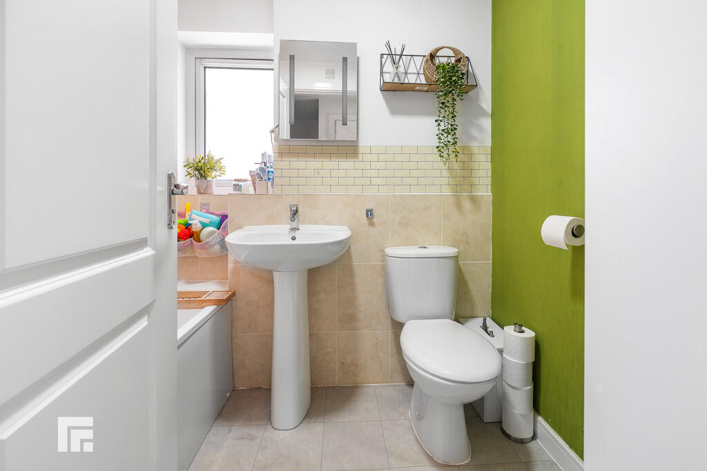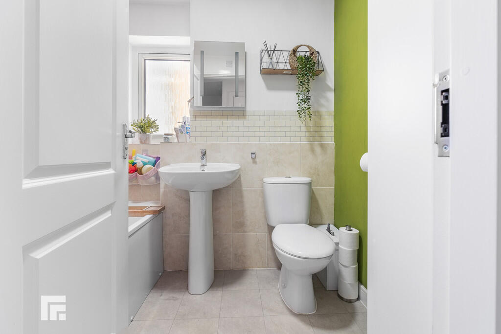 DOWNSTAIRSWC3' 3" x 5' 7" (0.99m x 1.7m) Vinyl tile effect flooring. W.C. Pedestal wash hand basin with mixer tap over and tiled splashback. Pendant light fitting. Double glazed obscure uPVC window to front aspect.