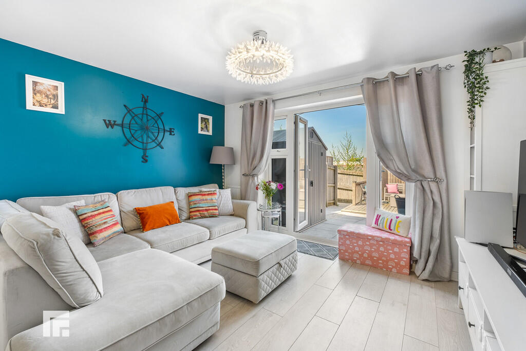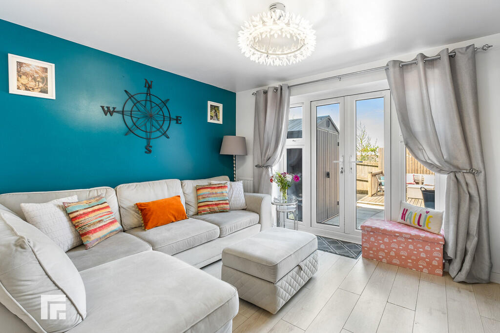 LOUNGE12' 9" x 16' 1" (3.89m x 4.9m) Laminate flooring. Pendant light fitting. Power points. TV and telephone point. Radiator. Double glazed uPVC French doors leading to rear garden. Door to storage cupboard.