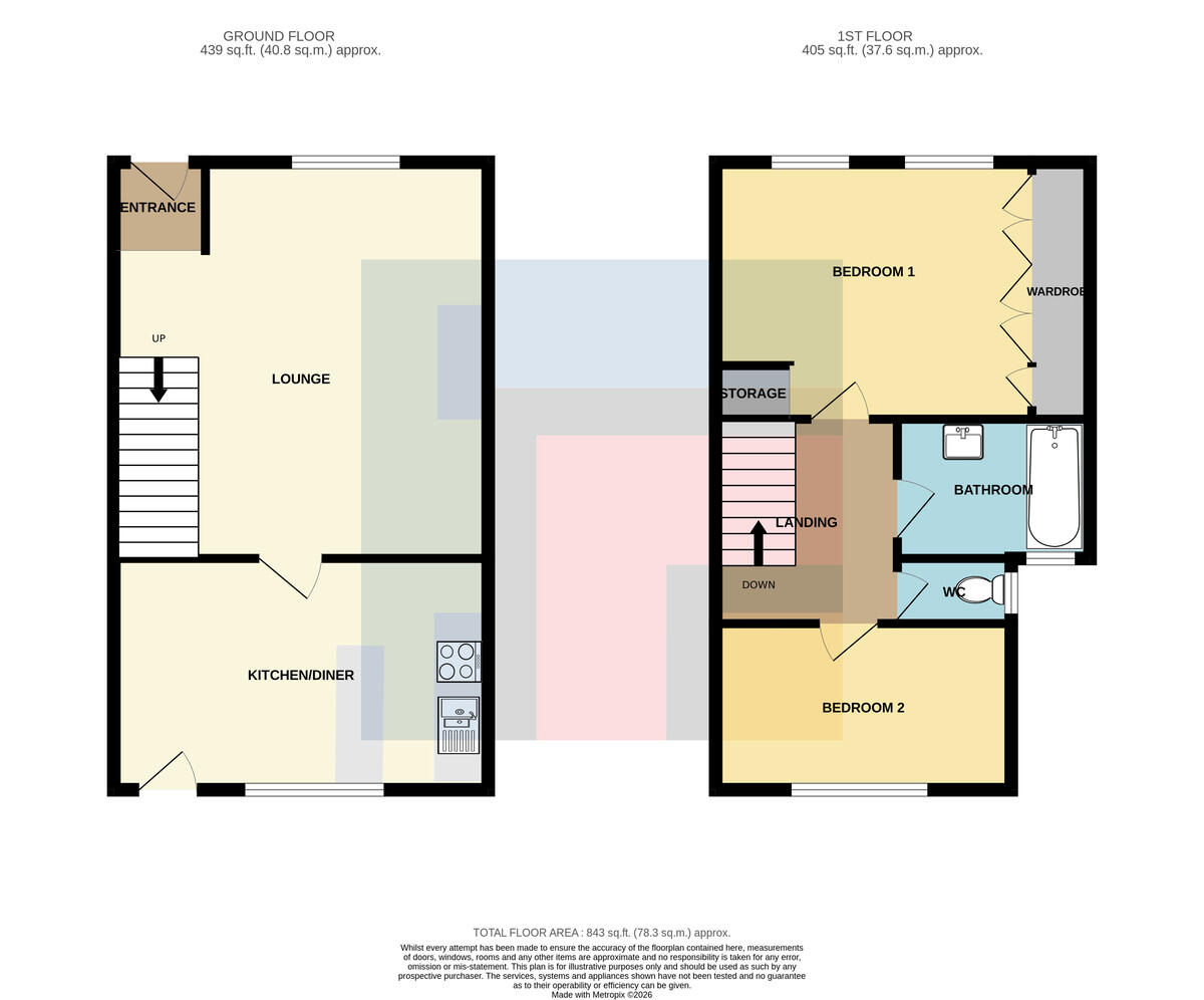 BEDROOMONE11' 0" x 13' 0" (3.37m x 3.98m) Two double glazed windows to front aspect with fitted roller blinds. Carpeted flooring. Fitted storage across one wall, housing boiler and additional storage cupboard. Loft hatch. Pendant light fitting. Radiator.