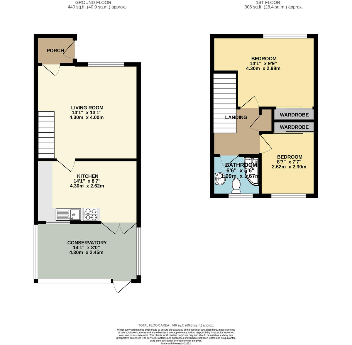FIRSTFLOOR14' 1" x 8' 0" (4.30m x 2.45m) Carpet to floor. Pendant light fitting. Loft hatch. Storage cupboard. Power points. Doors to both bedrooms and bathroom.