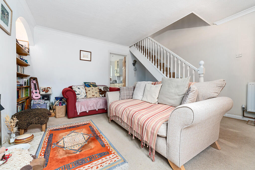 LIVINGROOM14' 1" x 13' 1" (4.30m x 4.00m) Carpet to floor. Double-glazed window to front. Electric fire. TV and Telephone point. Radiators. Door to kitchen. Storage under stairs. Stairs rising to first floor.