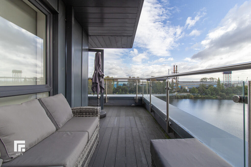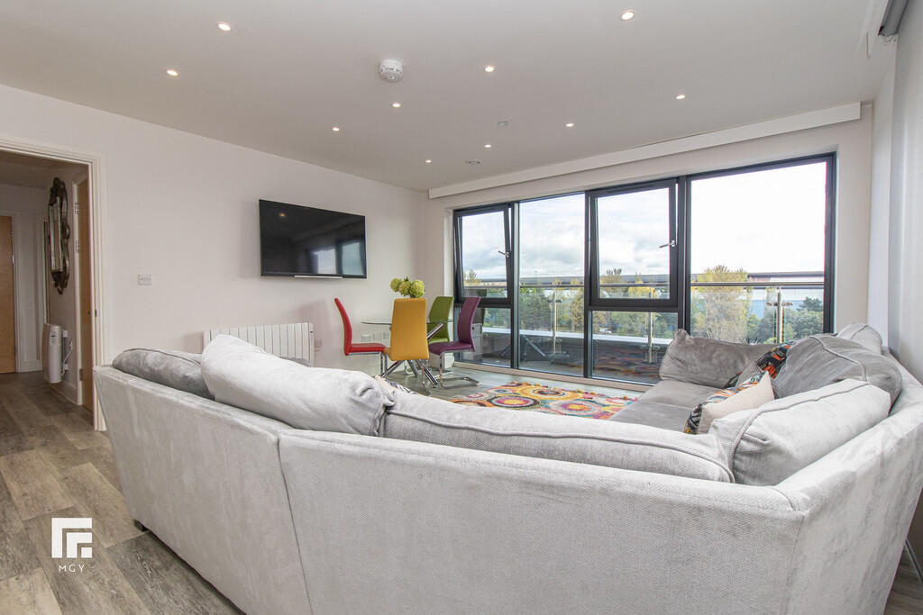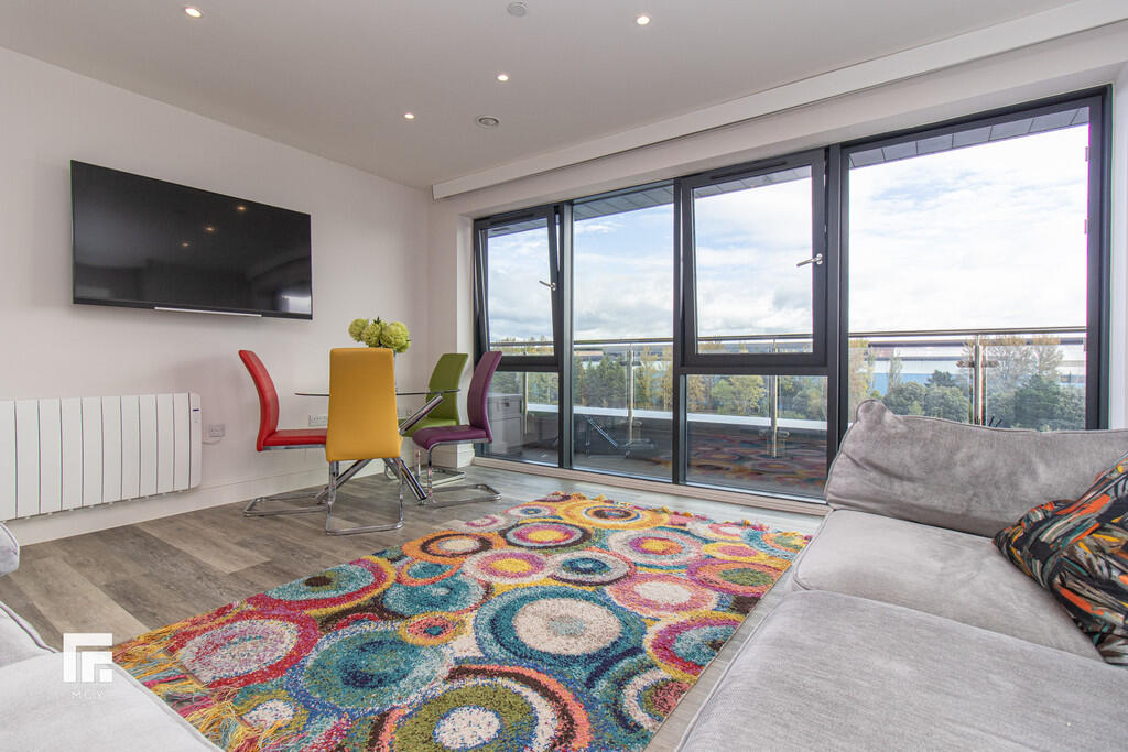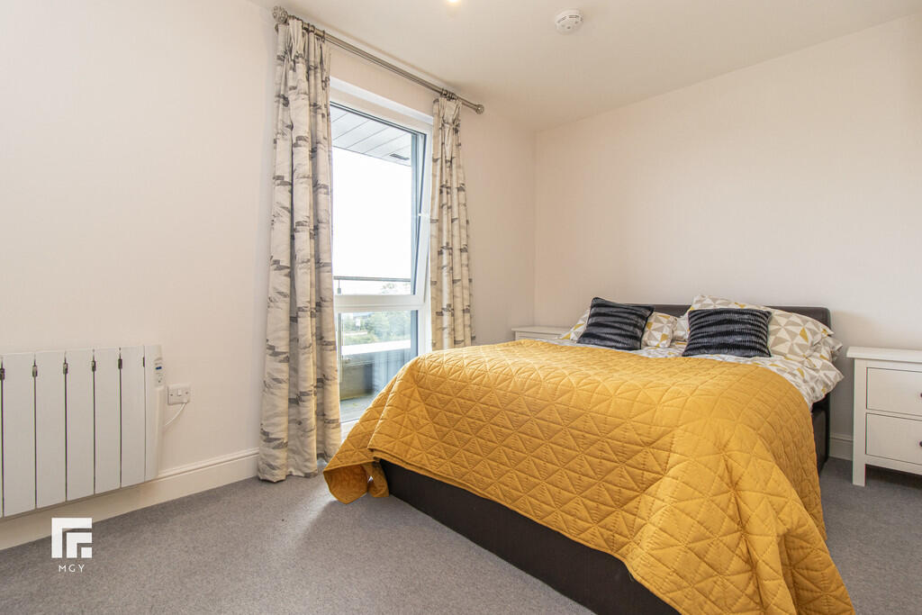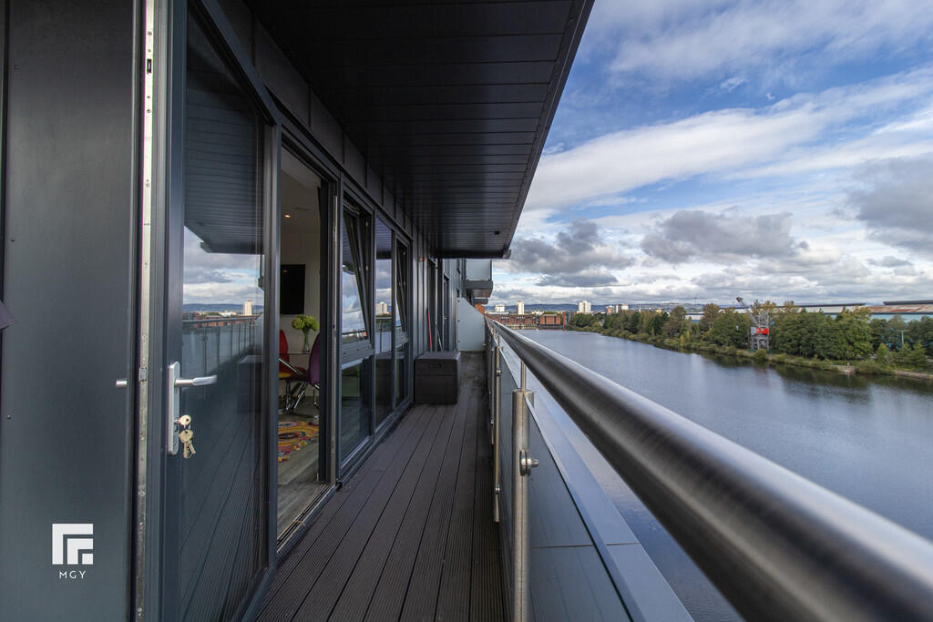 **WRAP-AROUND BALCONY** MGY present to let this this tastefully furnished fifth floor, two double bedroom apartment that boasts a large wrap-around balcony offering both water and city views in Schooner Wharf, Cardiff Bay. The high specification apartment not only benefits from the balcony and water views but also having an allocated car parking space whilst being a short walk to Cardiff Bay and Cardiff City Centre. The apartment briefly comprises of entrance hallway with storage cupboards, open plan living/kitchen area leading to the balcony, master bedroom with en suite, second double bedroom and main bathroom. 12 month contract. Council tax band E. Electric heating. Deposit £1,575. EPC B. *A holding deposit the equivalent of one weeks rent totalling £330 will be payable to secure the property subject to references and subject to contract*