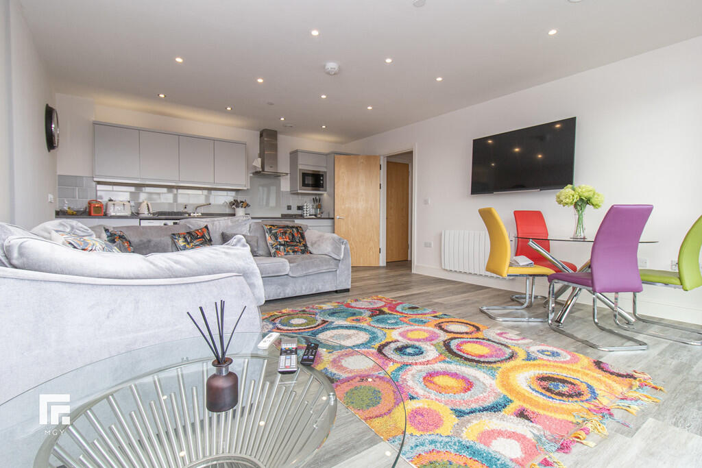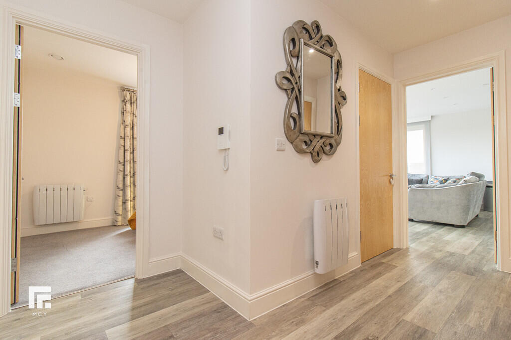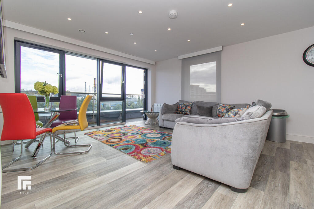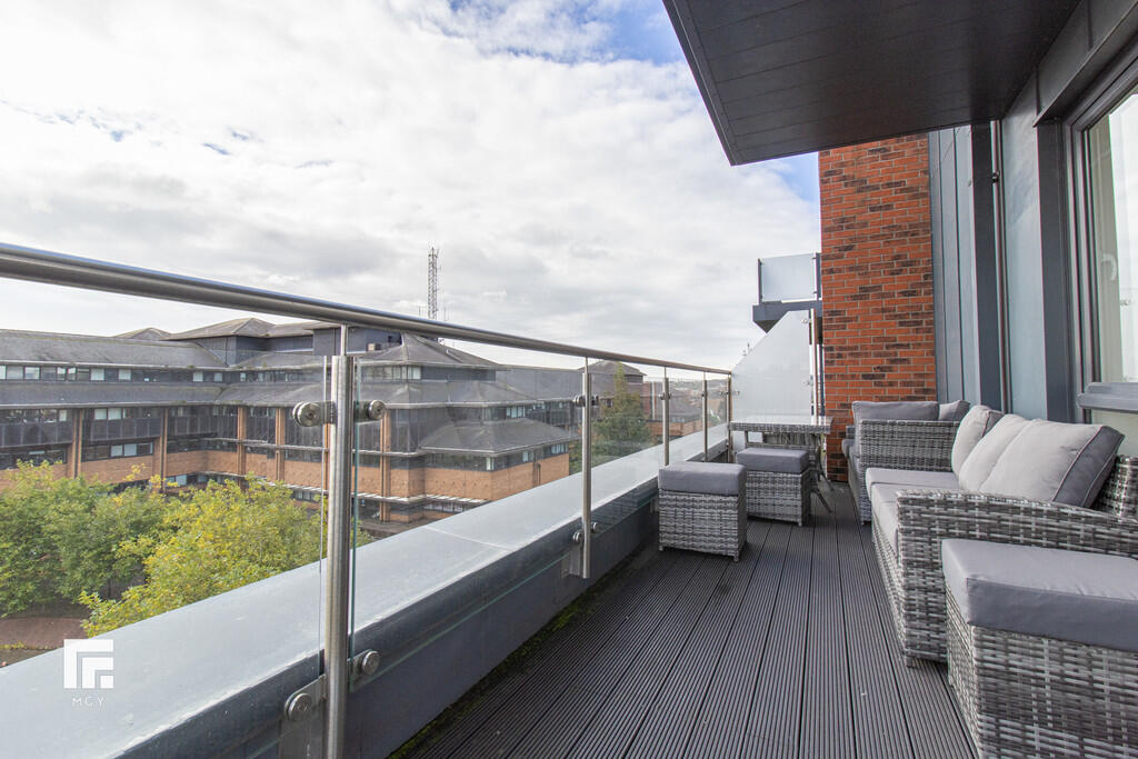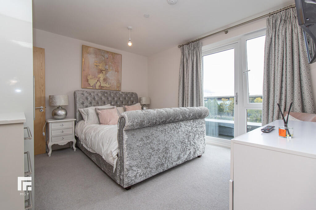 **WRAP-AROUND BALCONY** MGY present to let this this tastefully furnished fifth floor, two double bedroom apartment that boasts a large wrap-around balcony offering both water and city views in Schooner Wharf, Cardiff Bay. The high specification apartment not only benefits from the balcony and water views but also having an allocated car parking space whilst being a short walk to Cardiff Bay and Cardiff City Centre. The apartment briefly comprises of entrance hallway with storage cupboards, open plan living/kitchen area leading to the balcony, master bedroom with en suite, second double bedroom and main bathroom. 12 month contract. Council tax band E. Electric heating. Deposit £1,575. EPC B. *A holding deposit the equivalent of one weeks rent totalling £330 will be payable to secure the property subject to references and subject to contract*