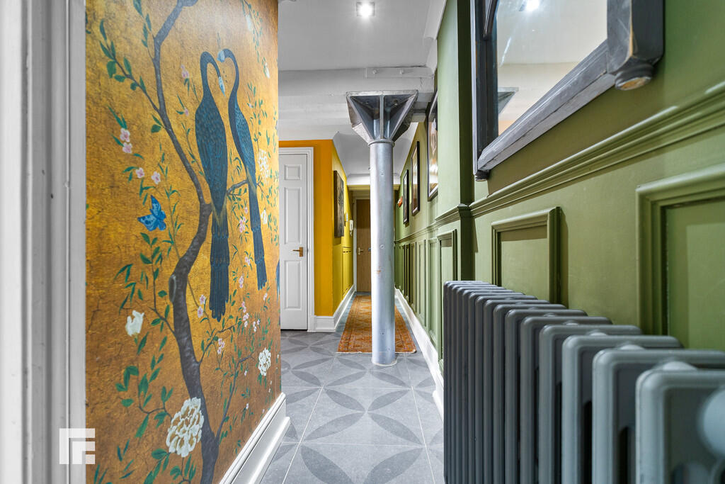 ENTRANCEHALL Entered via wooden door, with security spy hole. Wall mounted intercom system. Large, spacious hallway with cast iron pillar. Tiled flooring. Two storage cupboards, one housing new hot water tank. Coving. Wall mounted heater.