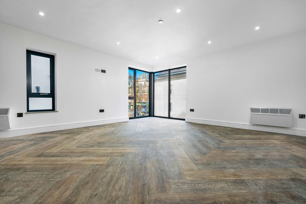 LOUNGE/DINER An excellent lounge and dining space accessed via Pollino Grey double doors from the entrance hall. Continuation of Classic Rustic Oak LVT flooring with two double glazed windows and two large floor to ceiling double glazed windows with impressive park and museum views. Wall mounted electric heater. Spotlights to ceiling. PowerPoints.