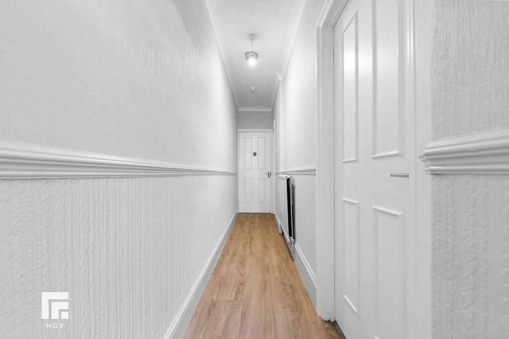 ENTRANCEHALL Entered via front door leading from communal hallway. Radiator. Dado rail. Pendant light fitting. Door to kitchen, bathroom and one bedroom.
