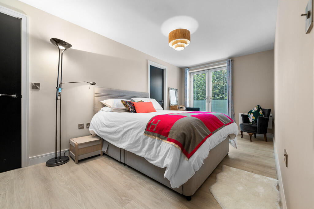 BEDROOMONE8' 8" x 16' 7" (2.65m x 5.06m) Double glazed uPVC French doors with fitted blinds leading to Juliet balcony. Spacious double bedroom. Luxury Vinyl Tile flooring (LVT). Wall mounted electric heater. Door to dressing room. Fitted light pendant. TV point. PowerPoints. Door to:
