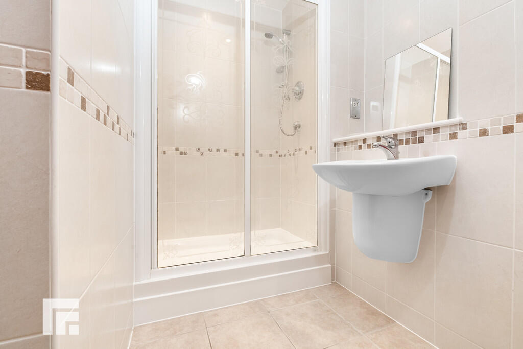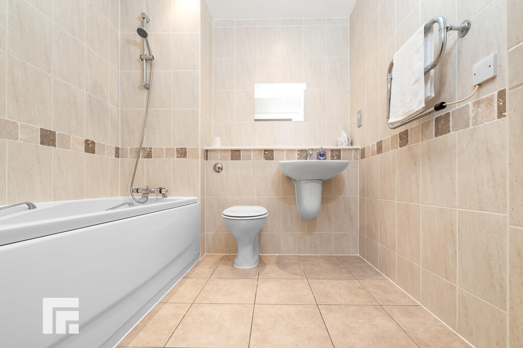 BATHROOM7' 0" x 6' 10" (2.14m x 2.10m) Tiled flooring. Fully tiled walls. Wall mounted wash hand basin. Panelled bath, with shower over and glass shower screen. W.C. Shaver point. Wall mounted mirrors. Heated towel rail. Extractor fan. Spotlights.