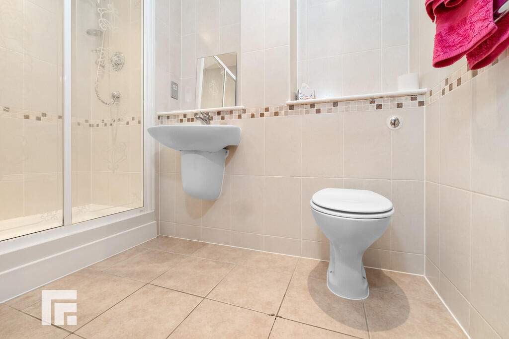 ENSUITE8' 5" x 4' 11" (2.59m x 1.52m) Large modern en-suite. Tiled flooring. Fully tiled walls. Double shower cubicle. Wall mounted wash hand basin. W.C. Shaver point. Heated towel rail. Extractor fan. Spotlights.