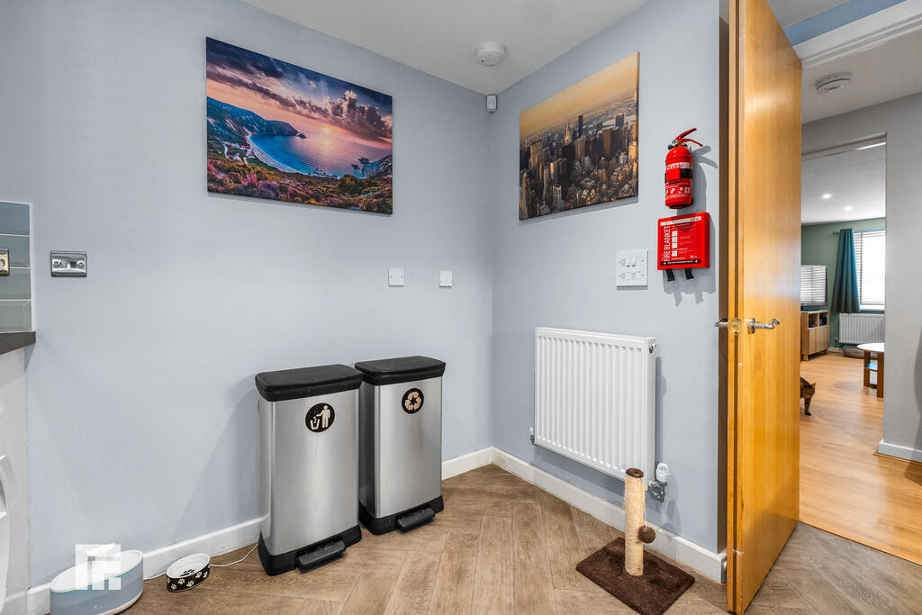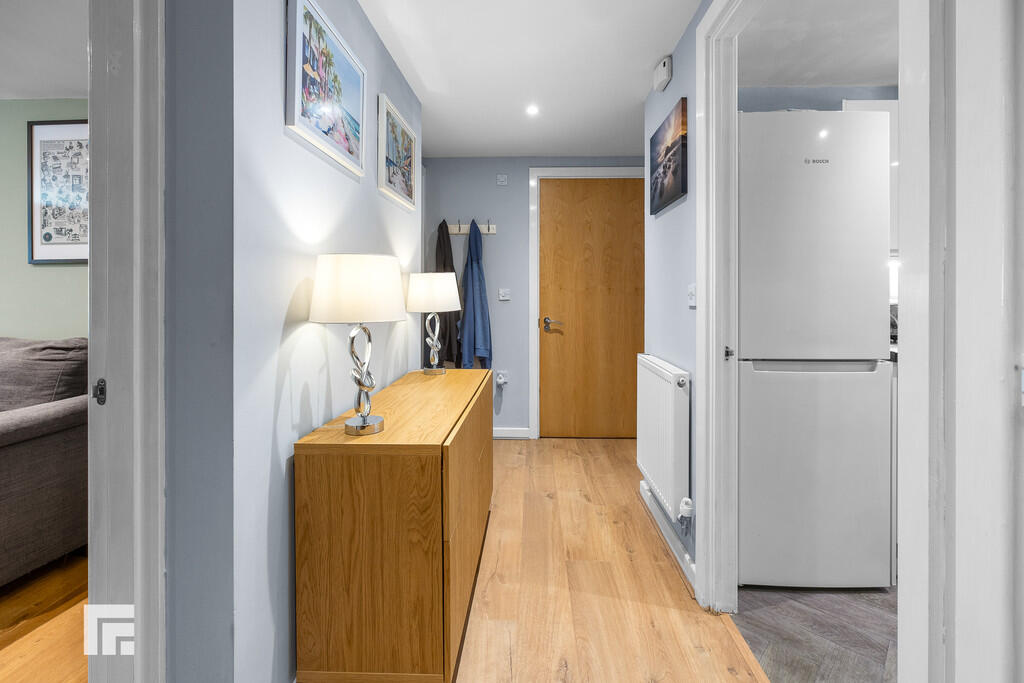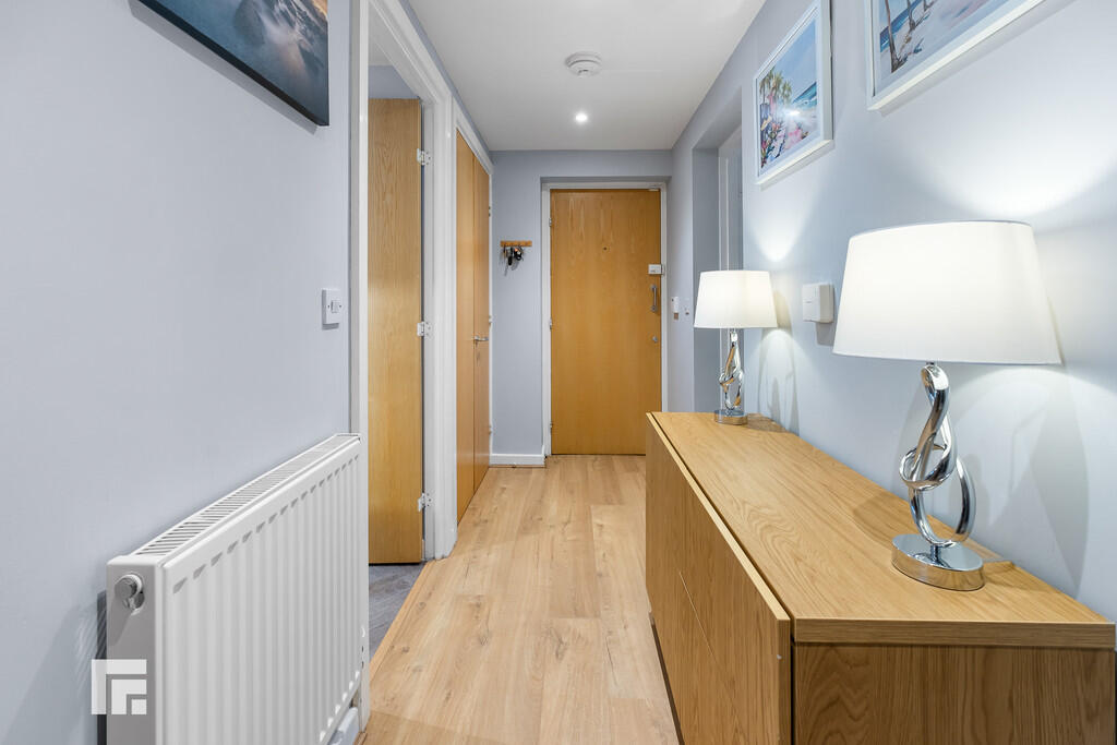 ENTRANCEHALL Entered via wooden door, with security spy hole. Laminate flooring. Double door storage cupboard. Wall mounted radiator. Spotlights.