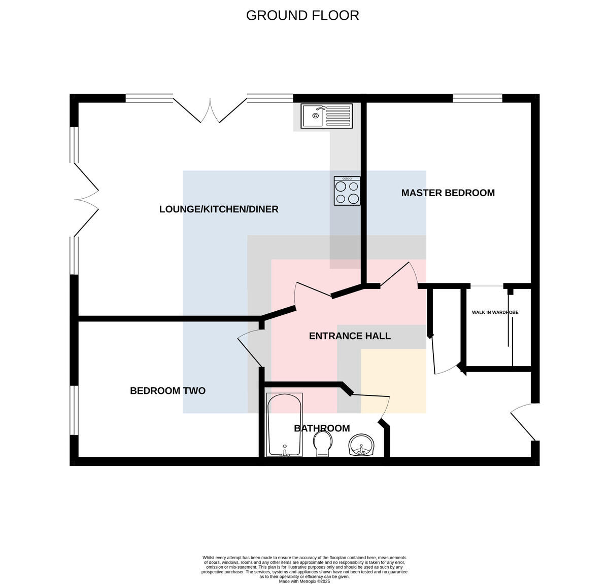 LOUNGE/KITCHEN/DINER17' 3" x 16' 6" (5.28m x 5.05m) Spacious living area. Carpet to floor of lounge/diner, tiled flooring to kitchen. Two pendant light fittings. Two wall mounted electric heaters. Two sets of double glazed uPVC French doors leading to outside space. Ample natural daylight. TV and telephone point. Power points. Modern fitted kitchen with a range of wall, base and drawer units with worktops over incorporating stainless steel sink and drainer with hot and cold tap over, and electric hob with extractor above and oven beneath. Integrated appliances such as fridge/freezer and washer/dryer.