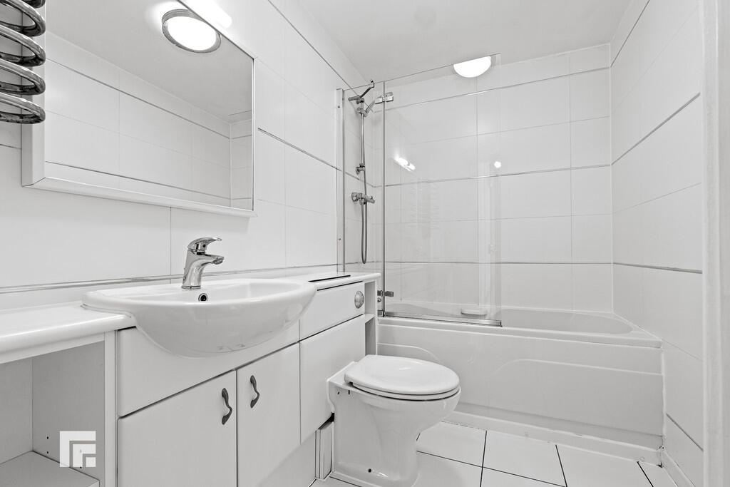 BATHROOM5' 4" x 8' 3" (1.64m x 2.52m) Tiled walls and flooring. White three-piece-suite comprising panelled bath with hot and cold tap over and mains powered shower above, WC, and vanity wash hand basin with mixer tap over and storage beneath. Pendant light fitting. Chrome heated towel rail. Extractor.