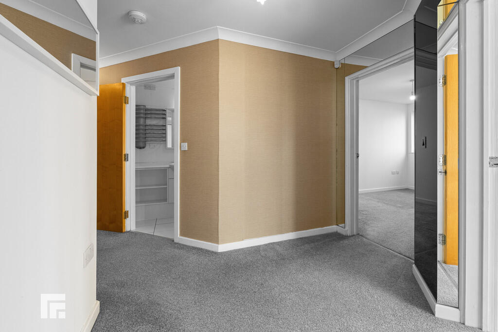 ENTRANCEHALL Entered via wooden front door with security spy hole, leading from communal hallway. Carpet to floor. Wall mounted electric heater. Wall mounted intercom system. Pendant light fitting. Doors to all rooms and storage cupboard.