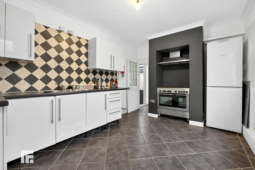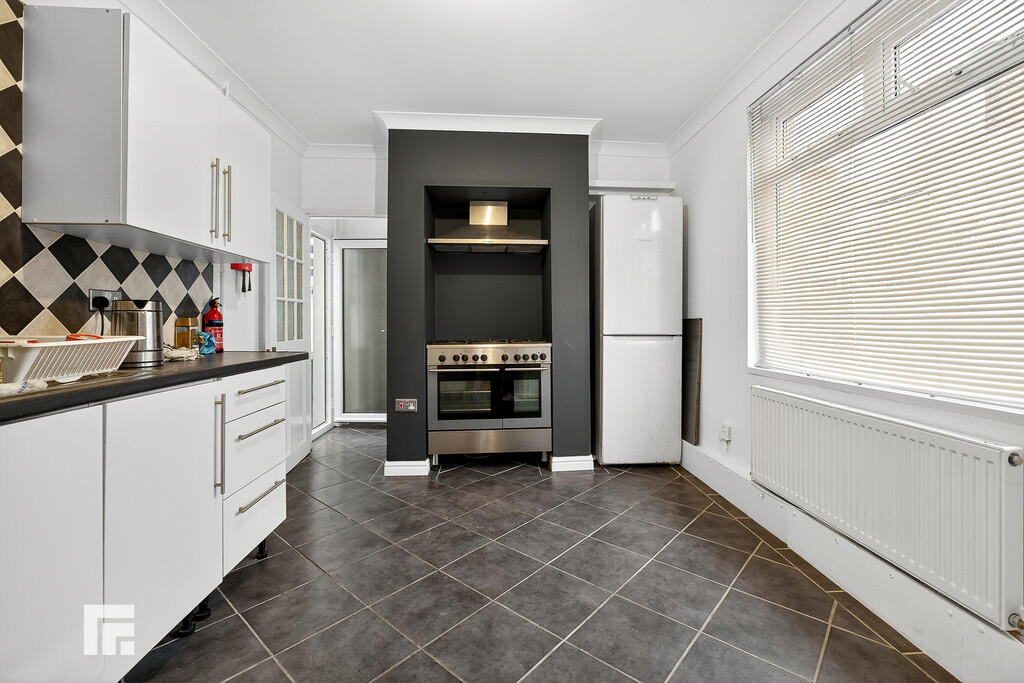 KITCHEN14' 0" x 11' 10" (4.28m x 3.63 m) uPCV front door leading to kitchen. Range of wall, base and drawer units with worktops over across three walls, incorporating 1.5 sink and drainer with mixer tap over and six ring gas hob with integrated oven beneath and extractor hood over. Tiled flooring and part tiled walls. Space for appliances such as fridge/freezer, and washing machine. Double glazed uPVC window to side aspect. Pendant lighting. Door to large understairs storage cupboard.