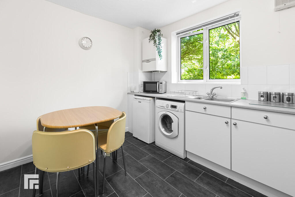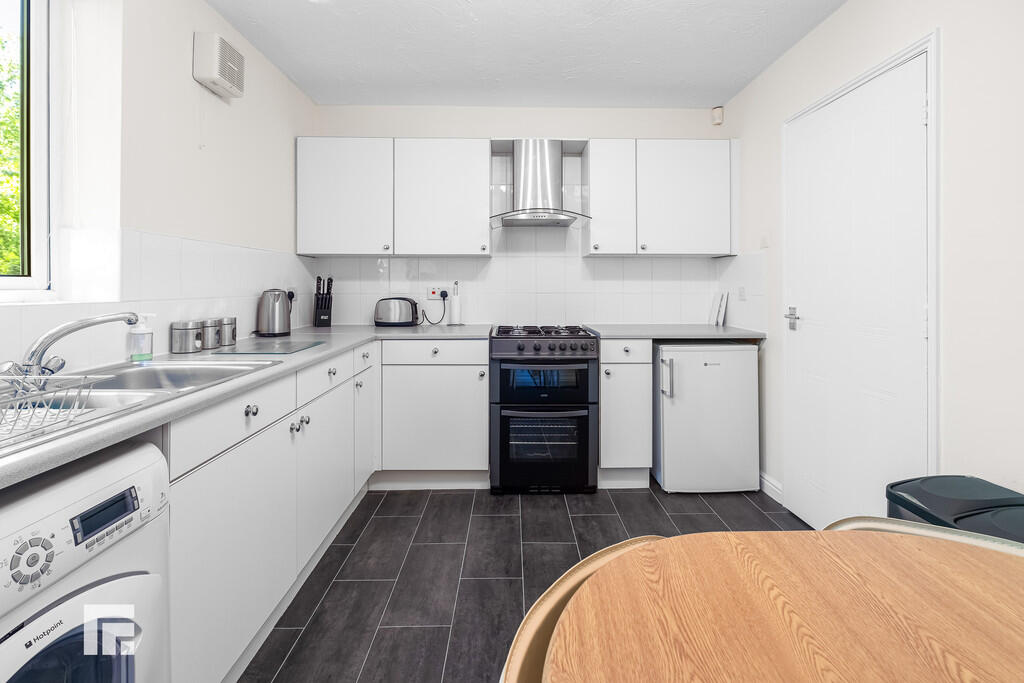 KITCHEN11' 9" x 9' 2" (3.6m x 2.8m) Large separate kitchen. Double glazed uPVC windows to front. Cushioned flooring and partly tiled walls. Modern wall and base units, with rounded edge work surfaces incorporating double stainless steel sink. Ample storage. Double gas oven, with four ring gas hob and extractor hood over. Wall mounted Combi-boiler. Space for washing machine, tumble dryer and fridge freezer. Space for table and chairs. Fitted heat detectors.