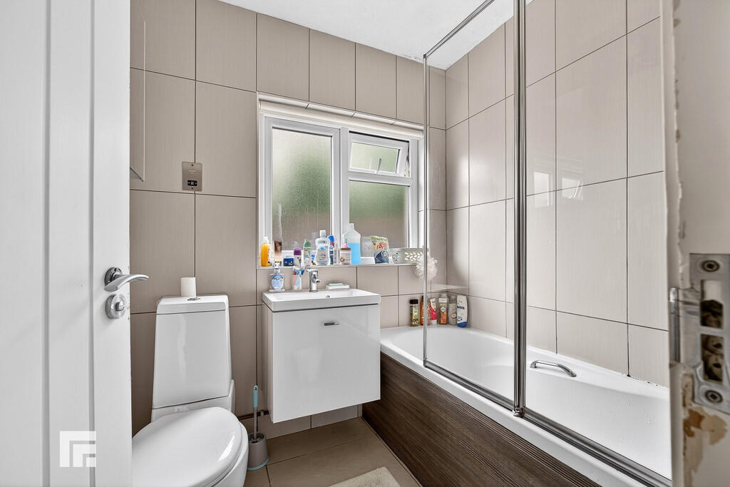BATHROOM Obscure uPVC double glazed window to rear. Fully tiled walls and floor. Wall mounted electric fan heater. 3 piece suite comprising of w.c vanity unit with inset wash basin. Wall mounted shower and folding glazed shower screen.