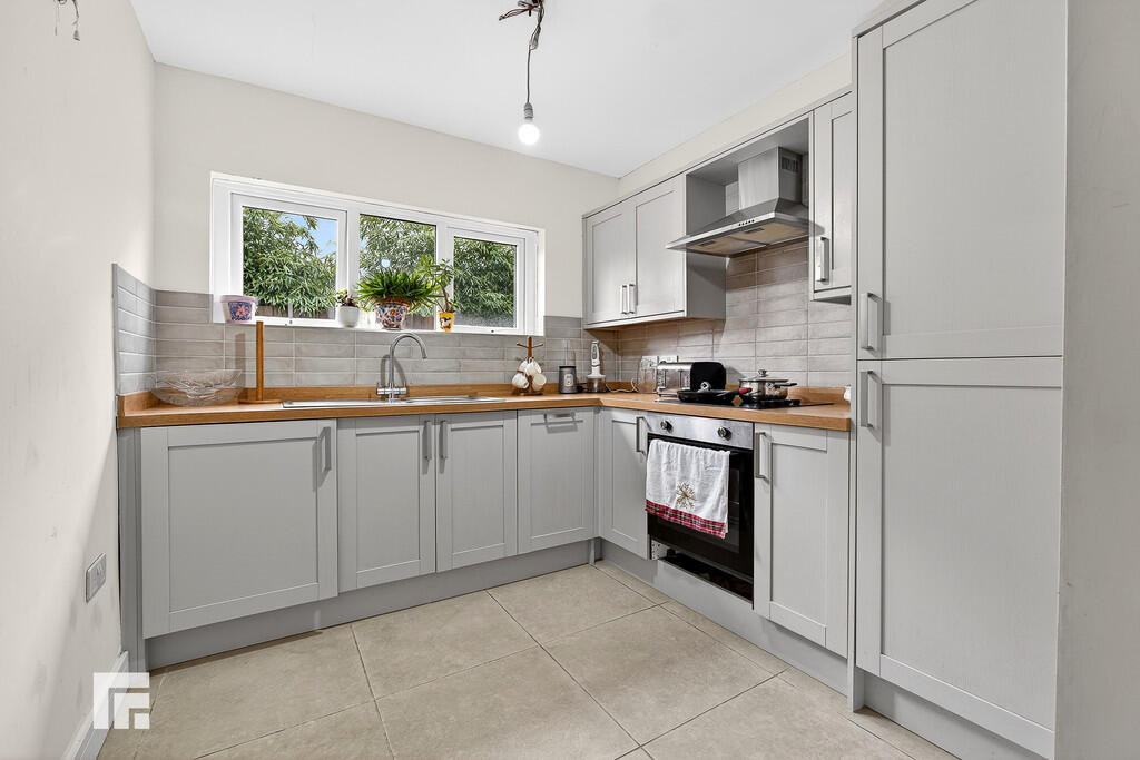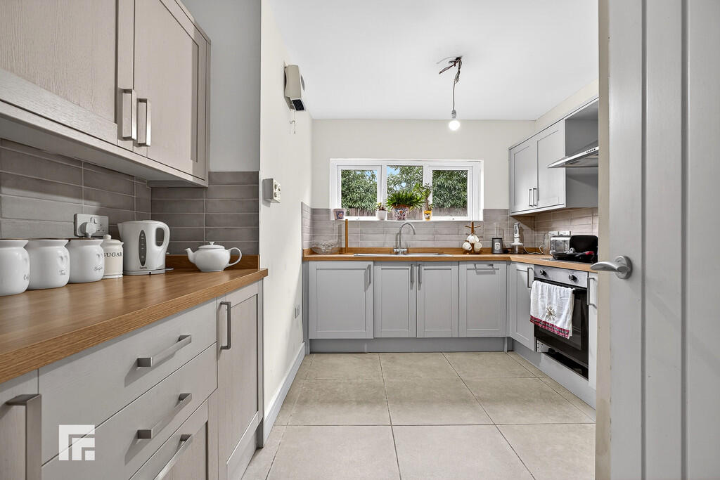 KITCHEN11' 6" x 10' 4" (3.51m x 3.17m)Max x incorporated base unit uPVC double glazing window to rear. Tiled floor. Range of fitted black and white units with round edge work surfaces and tiled splashbacks. Incorporated stainless steel sink unit with mixer tap. Wall mounted fan heater. Built in electric cooker. Inset Electric hob with stainless steel Extractor fan over. Integrated Fridge freezer/washing machine and dishwasher.