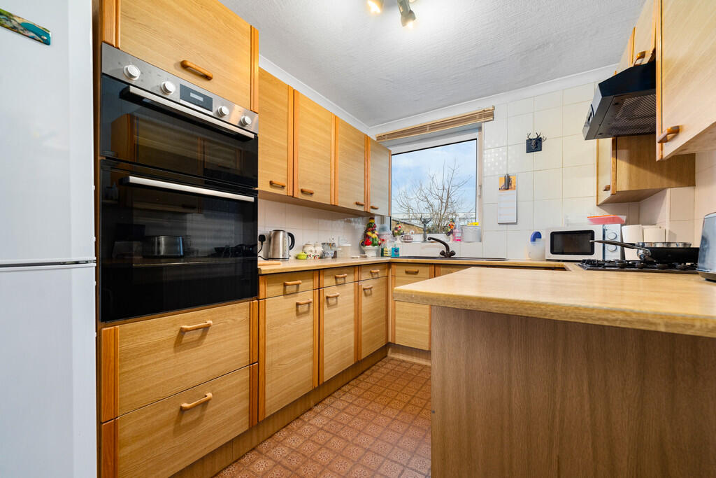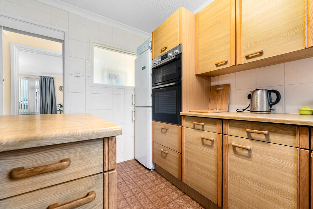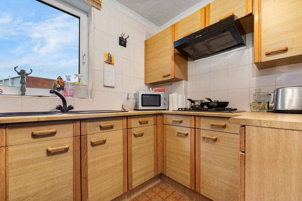 KITCHEN10' 3" x 7' 11" (3.13m x 2.42m) Double glazed window to rear. Base and wall units with work surfaces incorporating one and a half sink unit with mixer tap. Gas hob with extractor over. Tiled walls. Radiator.