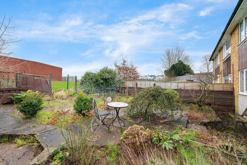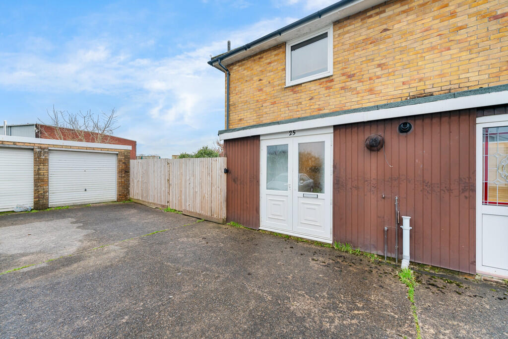 OUTSIDE Low maintenance garden to rear. Garage with remote controlled up and over door.
