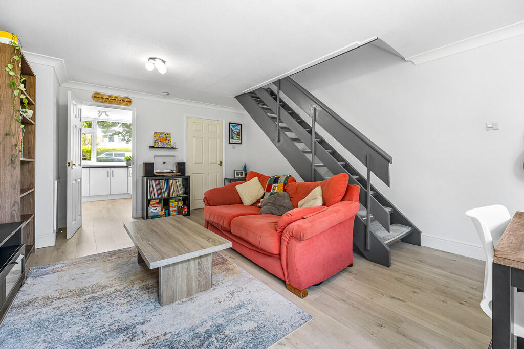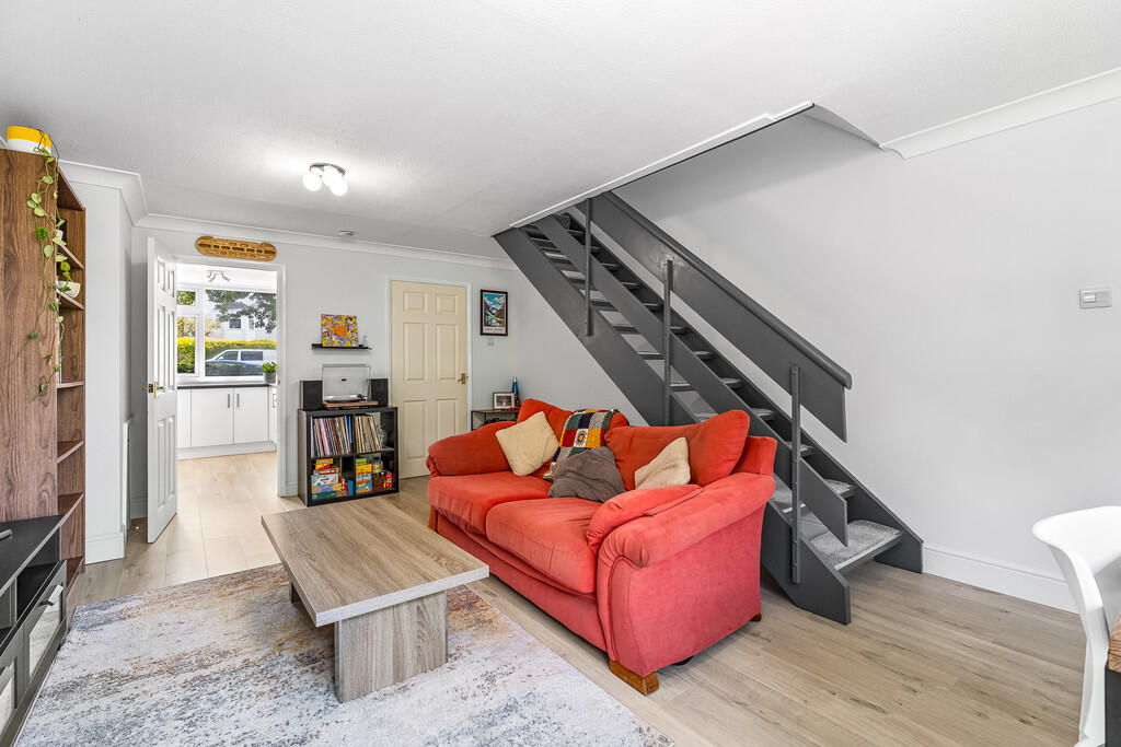 LOUNGE19' 4" x 13' 2" (5.90m x 4.02m) uPVC double glazed full height window to front. Coved ceiling. Luxury vinyl flooring. Stairs to first floor. Radiator. Door into;