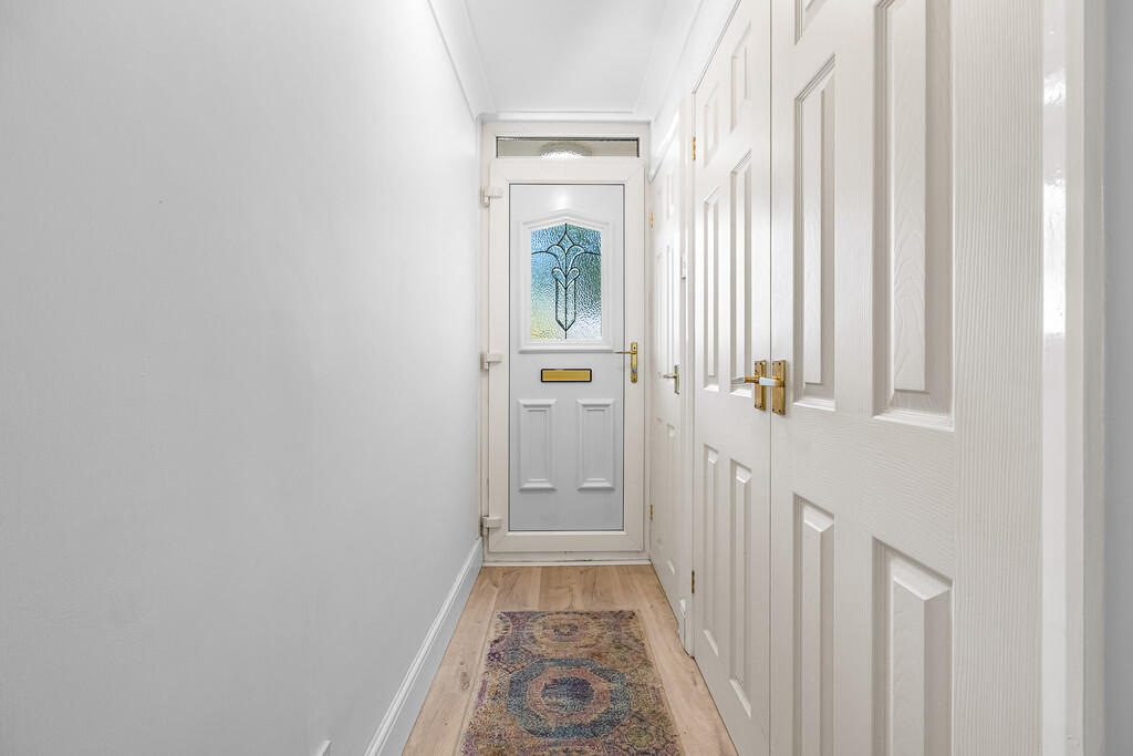 ENTRANCEHALLWAY Entered via uPVC double glazed door with decorative obscure glazed panel. Luxury vinyl flooring. Storage cupboard. Double doors to storage/cloaks cupboard. Door into;