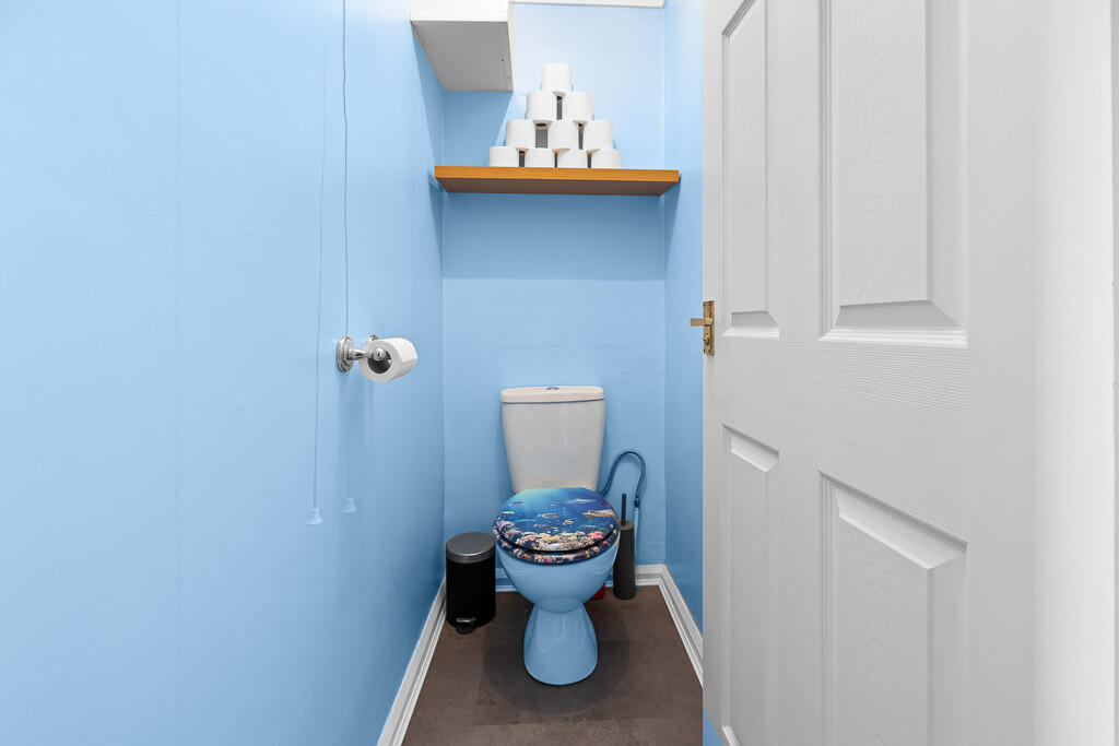 SEPARATEWC Low level WC. Shelving and vinyl flooring.