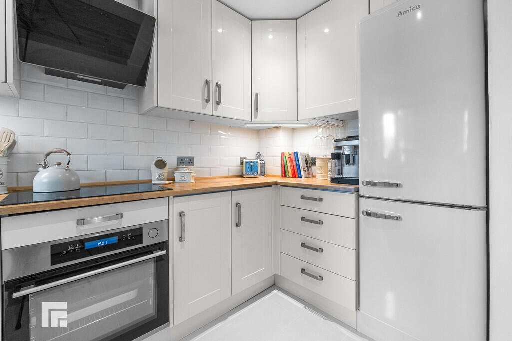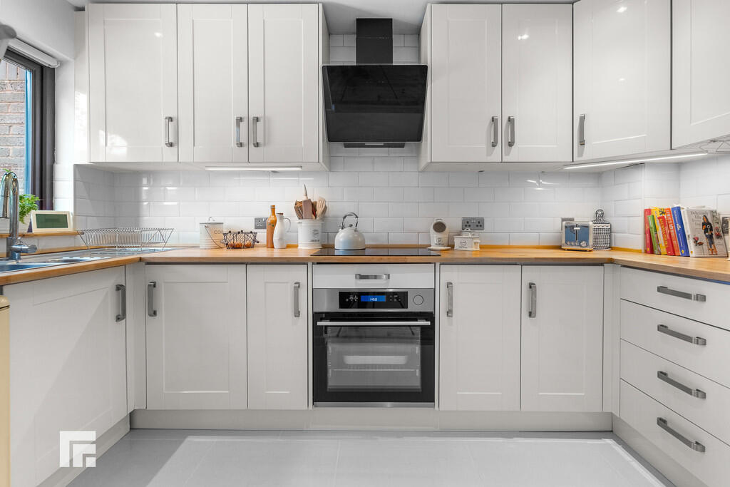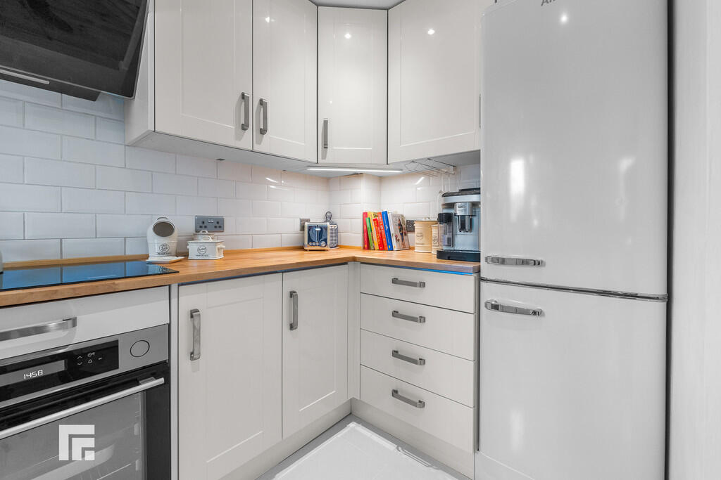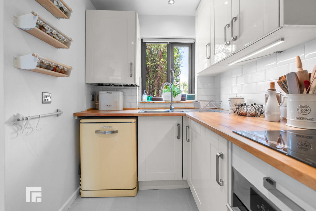 KITCHEN12' 0" x 5' 6" (3.68m x 1.70m) Appointed along three sides, eye and low level cupboards beneath solid wood (Beech) work surfaces. Integrated stainless steel 1.5 bowl sink with side drainer and chrome mixer tap. Integrated single oven, integrated 8 zone induction hob and modern extractor hood. Space for fridge/freezer and space for dishwasher. Cupboard housing concealed 'Worcester' gas combi boiler. Tiled flooring with insulation. Half wall tiling. Archway into hallway. uPVC window to front.