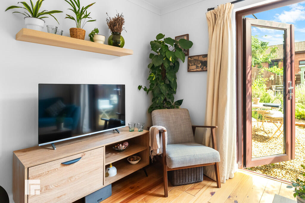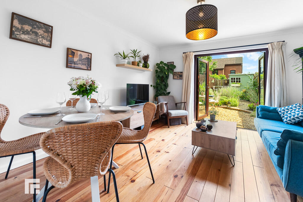 LOUNGE/DINER13' 1" x 11' 9" (4.01m x 3.59m) A good sized lounge/diner with solid wood floor, modern vertical radiator and double French doors opening into the beautifully landscaped and well maintained rear garden.