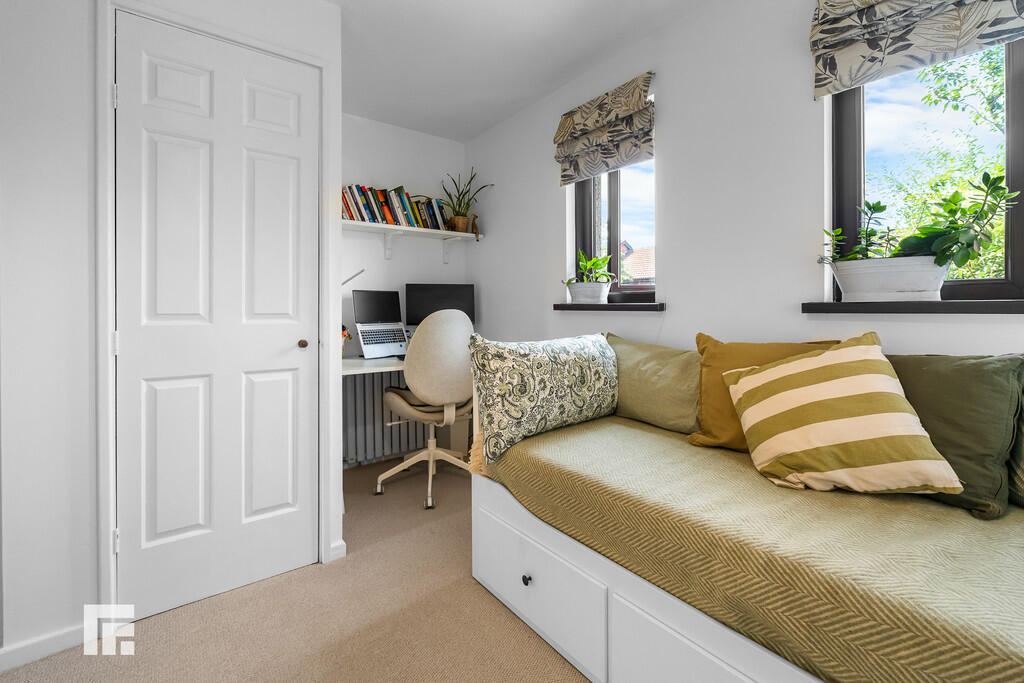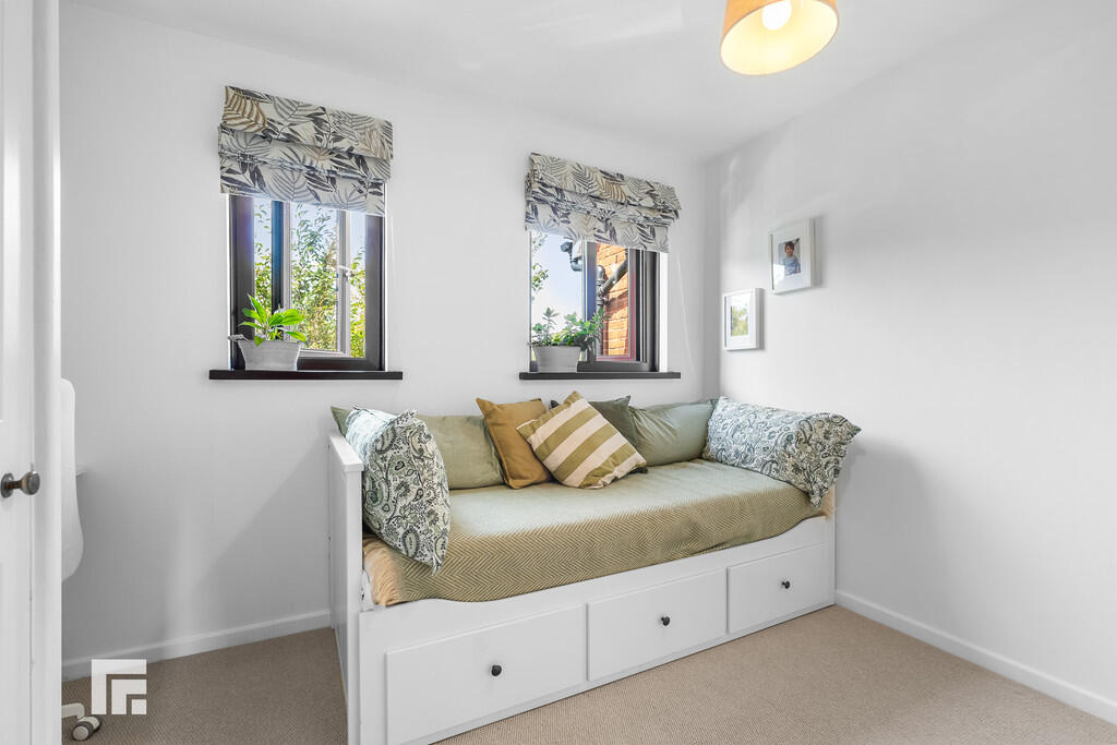 BEDROOMTWO11' 9" x 9' 2" (3.59m x 2.81m) A second good sized bedroom. Ample space for wardrobes. Built in over stairs cupboard with space for storage and currently being used for condenser dryer. Modern radiator, Two uPVC windows to front.