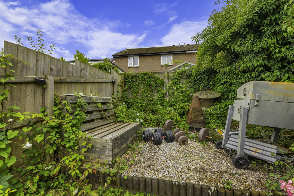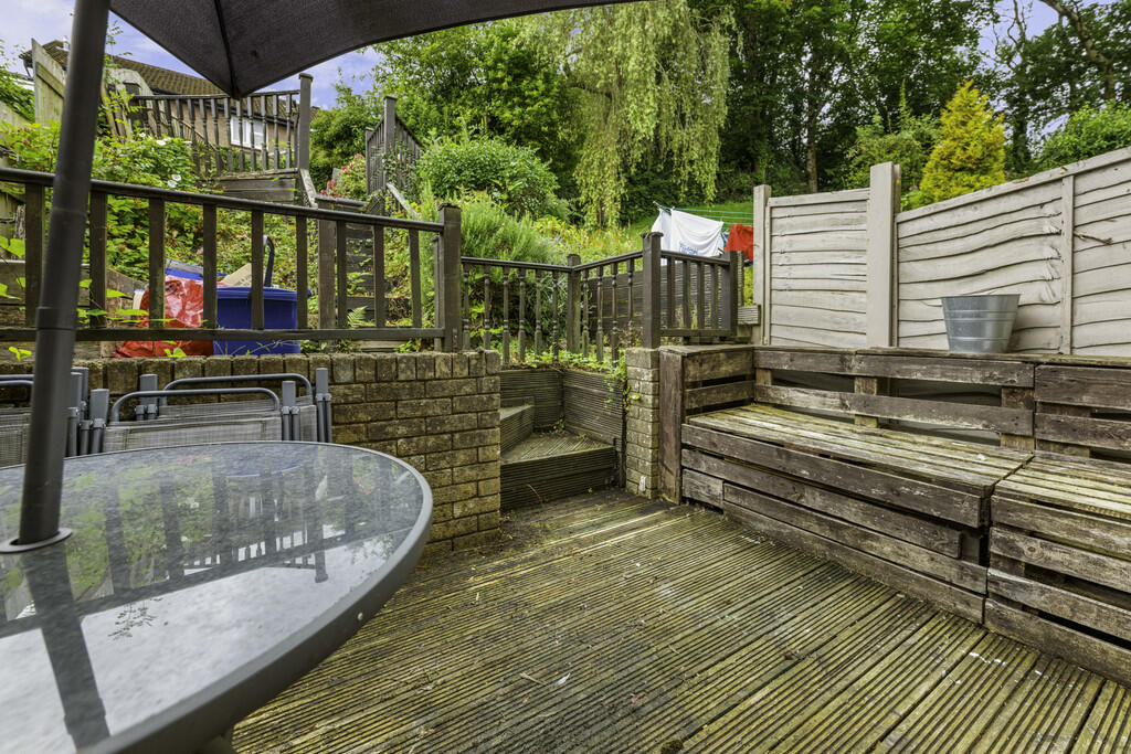 REARGARDEN An enclosed and tiered rear garden with decking areas. Shrub and flower borders.