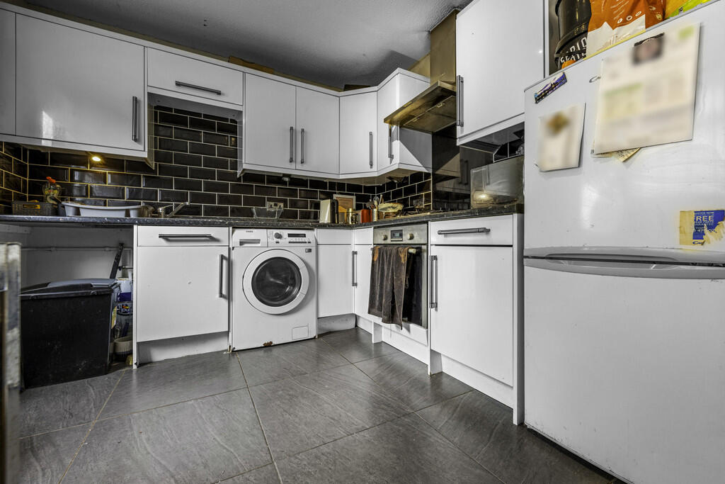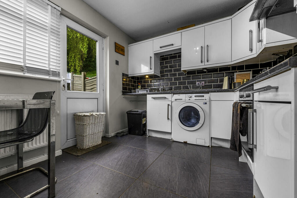 KITCHEN/DINER8' 9" x 11' 9" (2.69m x 3.59m) uPVC double glazed window to rear, plus uPVC double glazed door to garden. Kitchen appointed along two sides with a range of base and eye level units incorporating stainless steel sink unit with drainer and mixer tap and complementary work surfaces. Built in electric oven, gas hob and extractor over. Space for fridge/freezer and washing machine. Part tiled walls. Space for table and chairs.