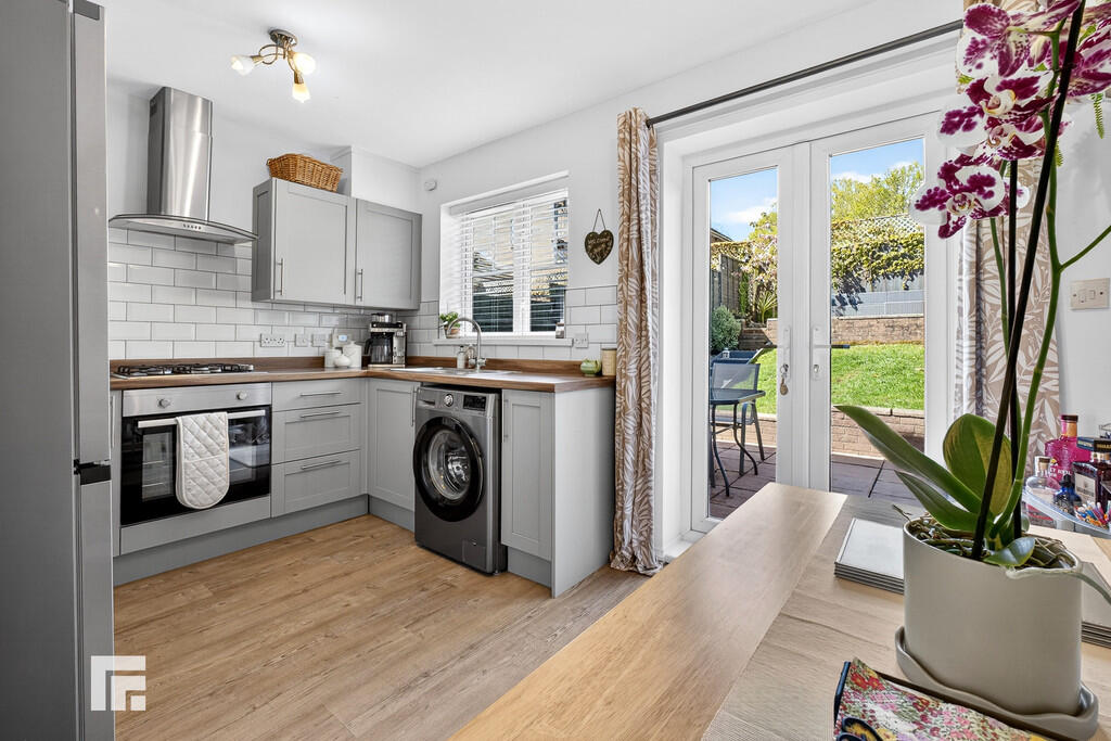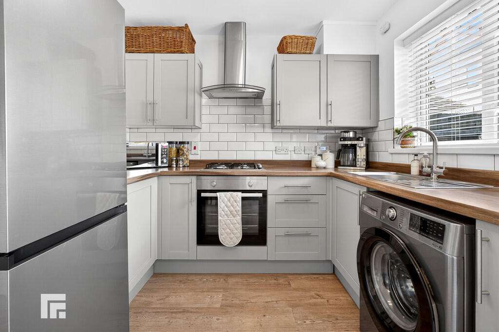 KITCHEN/DINER12' 9" x 8' 7" (3.91m x 2.62m) Double glazed window and French doors to rear garden. Laminate flooring. Base and wall units with work surfaces and tiled splash backs incorporating stainless steel sink unit with mixer tap. Built in electric oven and gas hob with extractor over. Space for fridge / freezer. Plumbing for washing machine. Good size walk in storage cupboard.