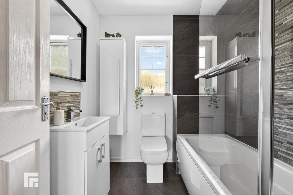 BATHROOM6' 6" x 6' 2" (1.99m x 1.88m) Obscured double glazed window to rear. Panelled bath with mixer tap and mains shower over, vanity enclosed wash hand basin with mixer tap, w.c. Part tiled walls. Tiled floor. Wall mounted bathroom cabinet.